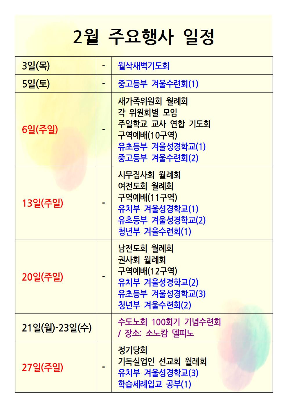 2022년 2월 교회행사